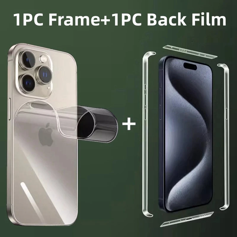 فيلم هيدروجيل الإطار آيفون 15 برو ماكس واقي الشاشة الخلفية فيلم آيفون 12 13 14 برو ماكس 15 بلس 15 برو ماكس غير زجاجي