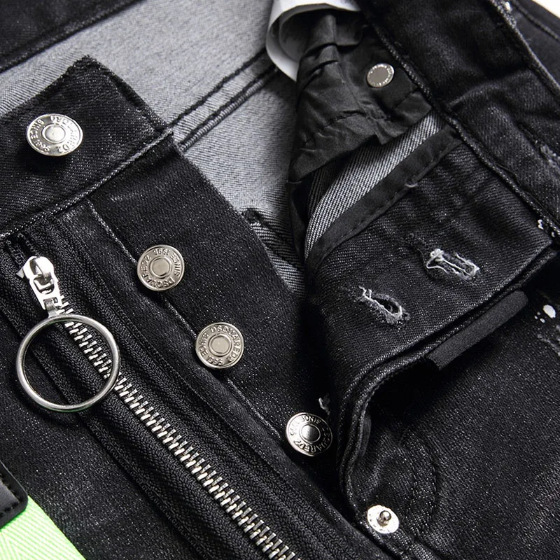 موضة جديدة للرجال سراويل جينز سوداء عالية الجودة للرجال بنطلون جينز للشارع للرجال مصمم بسحّاب غير رسمي