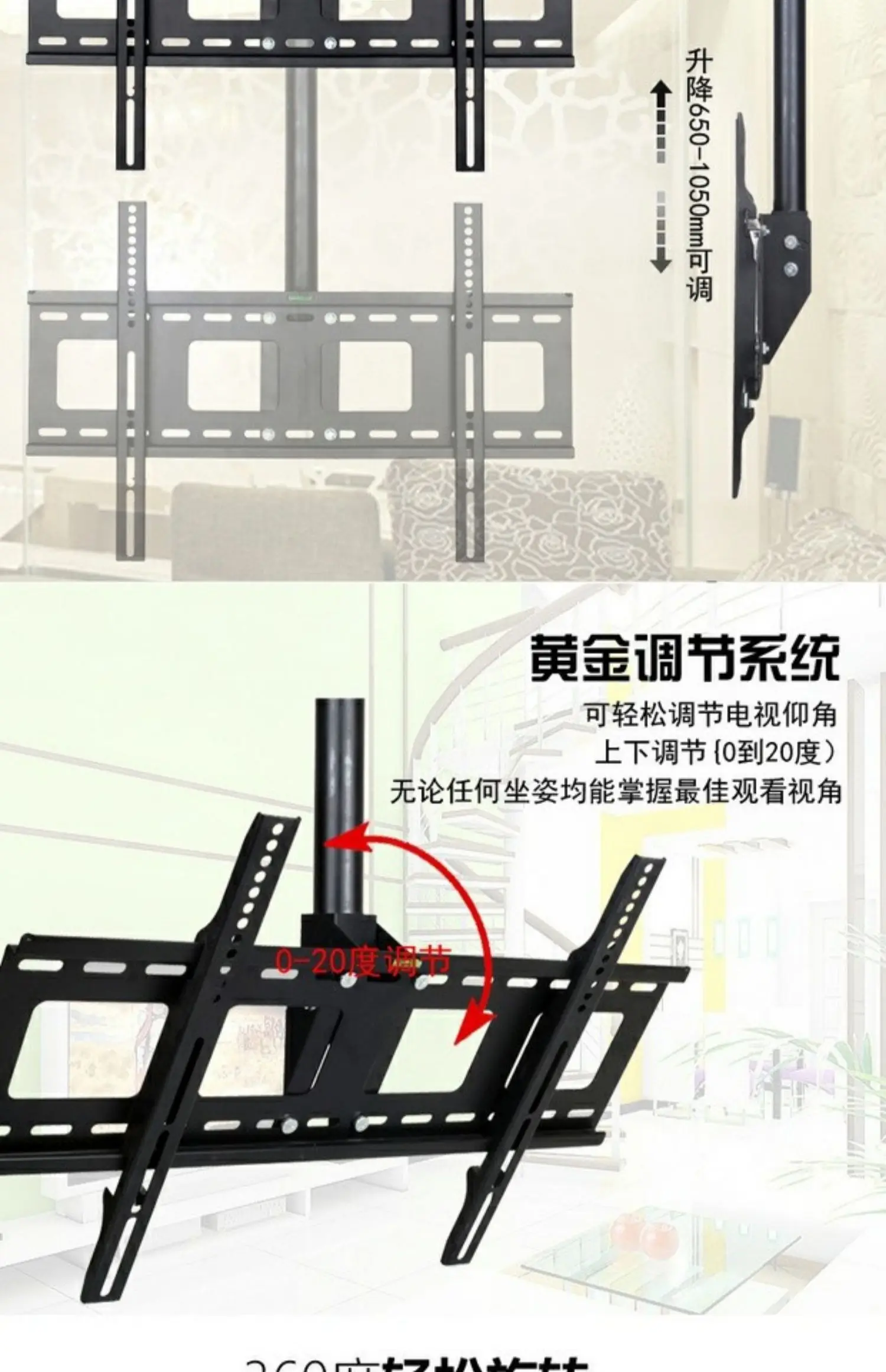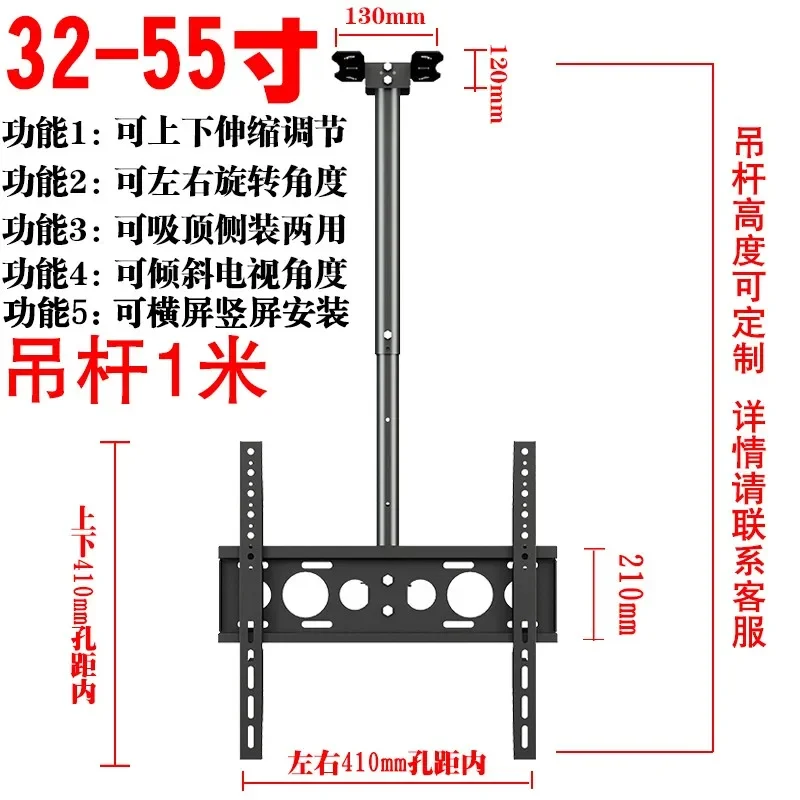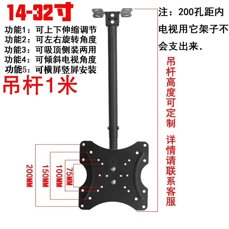 شماعة تلفزيون LCD مقاس 14-70 بوصة، صندوق إضاءة إعلاني، حامل سقف عالمي، شماعة تلسكوبية