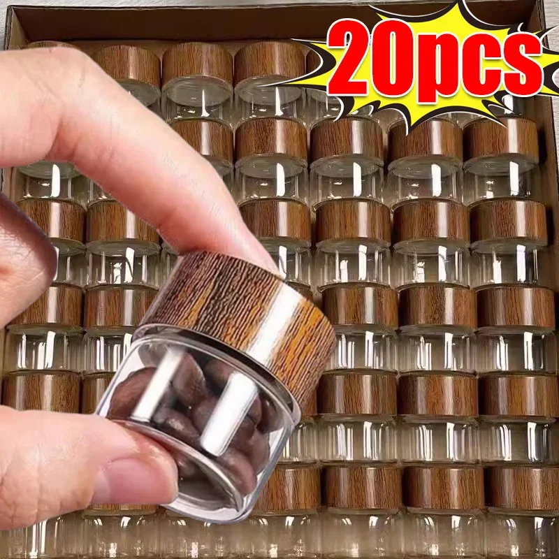 10/20/30 مللي زجاجات زجاجية صغيرة غطاء خشبي شاي شفاف حبوب البن حاوية تخزين المطبخ علبة مختومة برطمانات توابل صغيرة