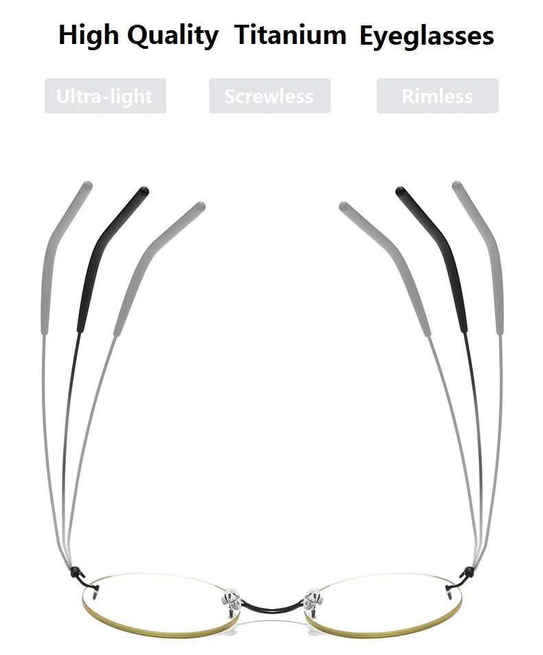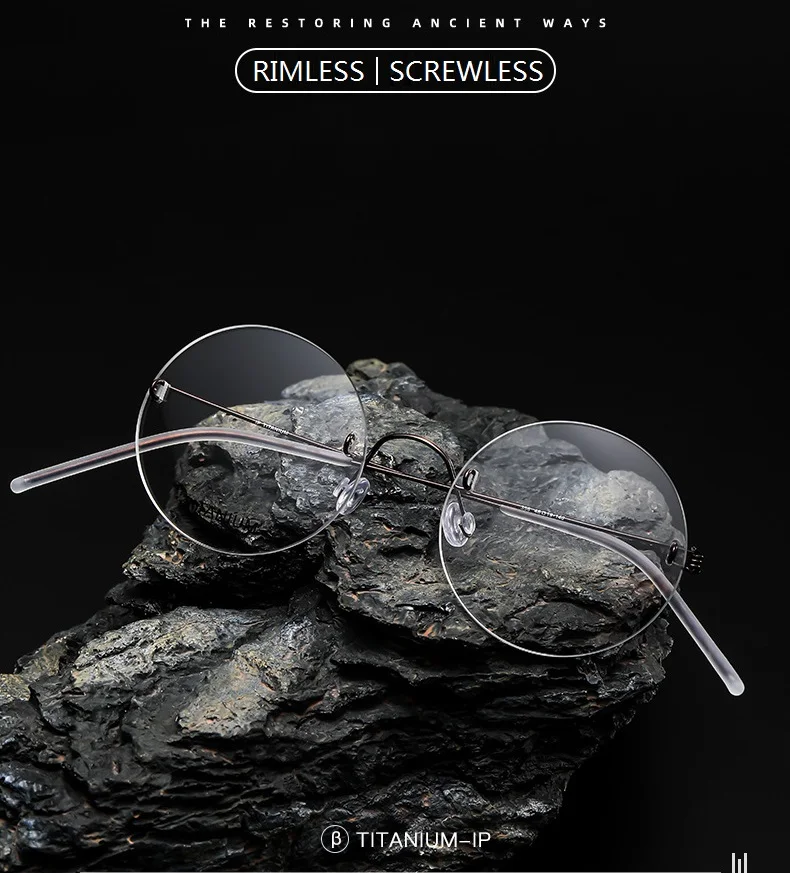 بدون إطار نظارات بدون برغي من التيتانيوم الخالص ، إطار خفيف للغاية ، علامة تجارية دينمارك ، نظارات خفيفة للغاية ، نظارات دائرية