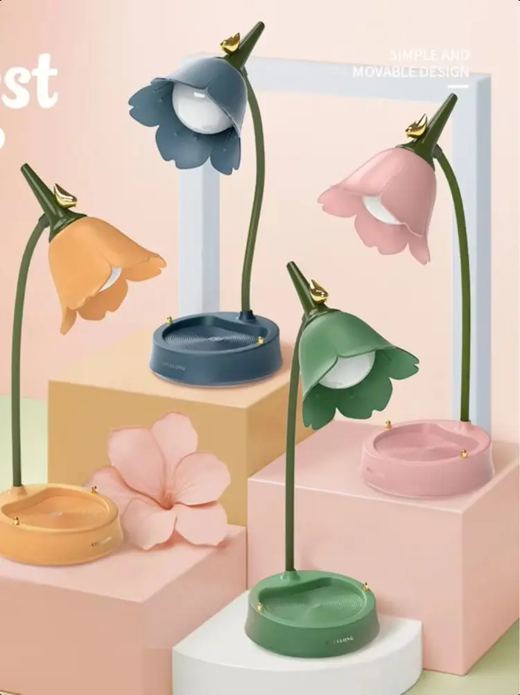 1.المظهر :تصميم الزهور والطيور عالي الجودة والجميل يجعل المصباح المكتبي أكثر سحرًا وحيوية، ويمكن استخدامه كحامل للهواتف المحمولة.