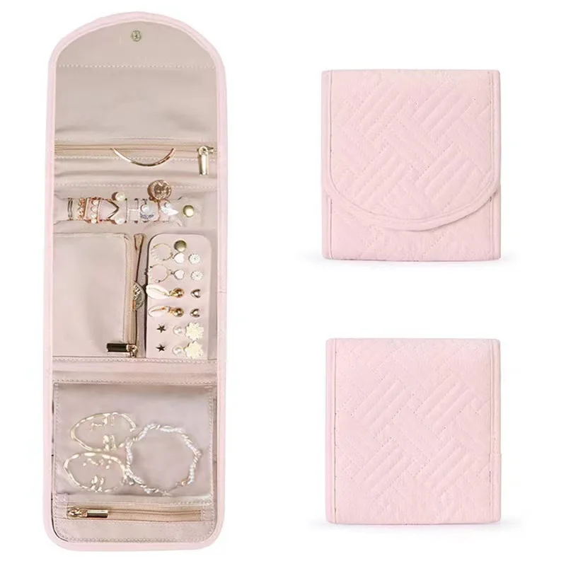 حقيبة مجوهرات سفر محمولة قابلة للطي للقلادة والأقراط والخواتم وحقيبة مجوهرات ومنظم أكياس تخزين الرحلات للنساء والفتيات