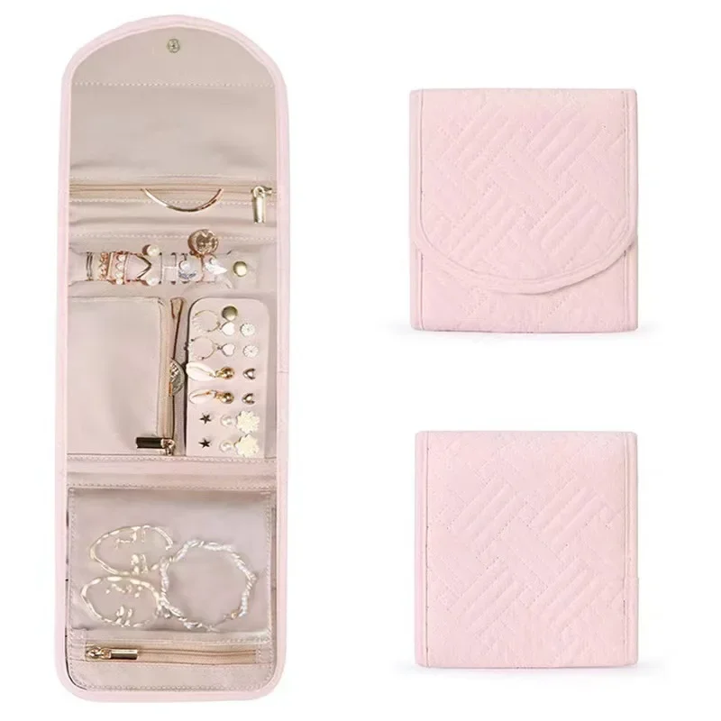 حقيبة مجوهرات للسفر قابلة للطي وقابلة للطي لقلادة وأقراط وخواتم وحقيبة مجوهرات منظم حقائب تخزين للرحلات للنساء والفتيات